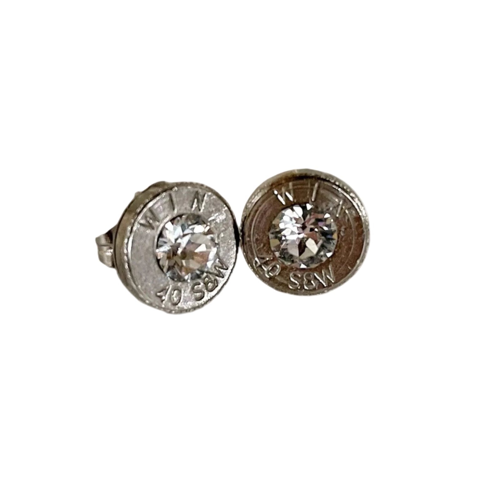 Handmade from real, recycled bullet casings, these Diamond Bullet Stud Earrings blend subtle sparkle with bold character. Set with a diamond birthstone crystal for April, they offer a refined touch while keeping the rugged edge that defines Four Elks jewelry.
